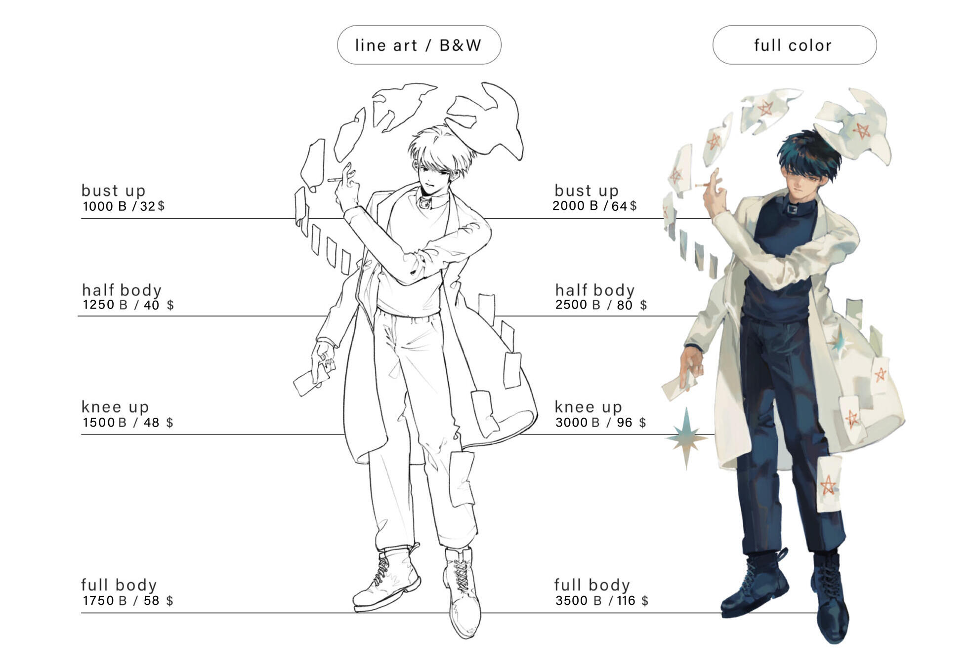 Commercial commission will X2 from personal price rate. Price can be upper or lower depend on detail of works.