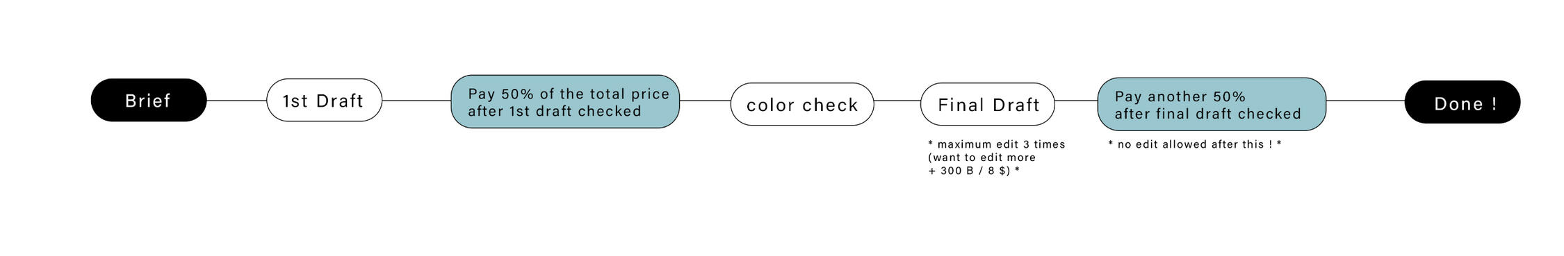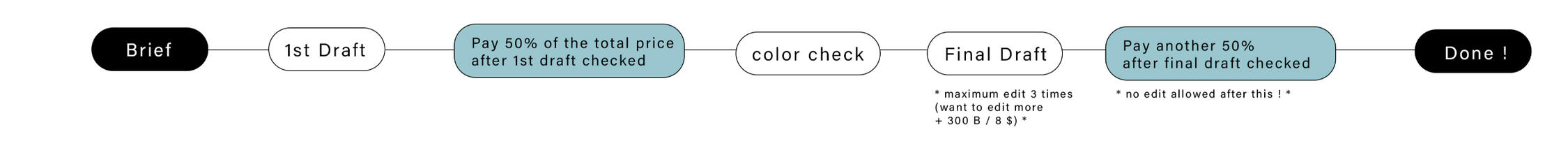 You can make a reservation on my SNS and check your works progress and queue at Trello icon in the end of this site.